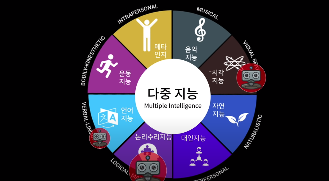그럼 인간과 기계가 협력의 본질은 무엇일까요? 기계는 기계답게 생각하고 학습을 한다고 했습니다. 기계가 유리한 분야가 있습니다. 논리 수학 지능 IQ는 기계가 높아질 가능성이 있어요. 보는 것도 다국어를 배우는 것도 기계가 빨리 배울 수가 있어요. 그런데 향후 50년이 지나도 기계가 못하는 게 있습니다. 사람의 마음을 이해하는 것. 자연으로부터 감동을 받는 것, 다른 사람과 협력을 할 줄 아는 능력. 그리고 자기 자신을 깨닫고 자기 자신의 능력을 이해하는 것들인데 이것을 우리는 메타인지라고 합니다.